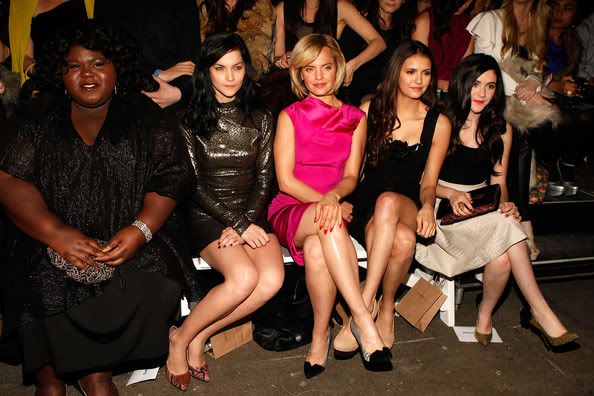 And Gabourey Sidibe hit up the front row with Leigh Lezark, Mena Suvari, Nina Dobrev and Isabelle Fuhrman at the Venexiana Fall 2012 fashion show.